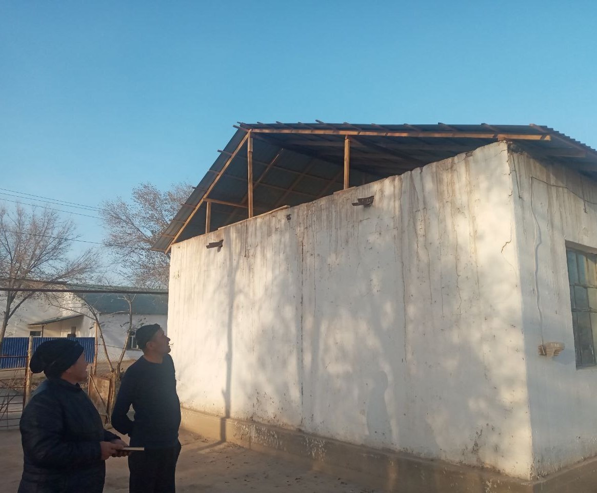 Лойиҳа доирасида бугунги кунда “Жайҳун” МФЙ ҳудудида 27 та оиланинг турар жойларини том қисмини таъмирлаш ва ёпиш режалаштирилган бўлиб, шундан ҳудуддаги фуқаролар Қ.Сейтов, А.Ҳакимниязов, Қ.Хожаназаров, Қ.Эржановларнинг уйларини том қисмида ёпиш ишлари бошлаб юборилди.
