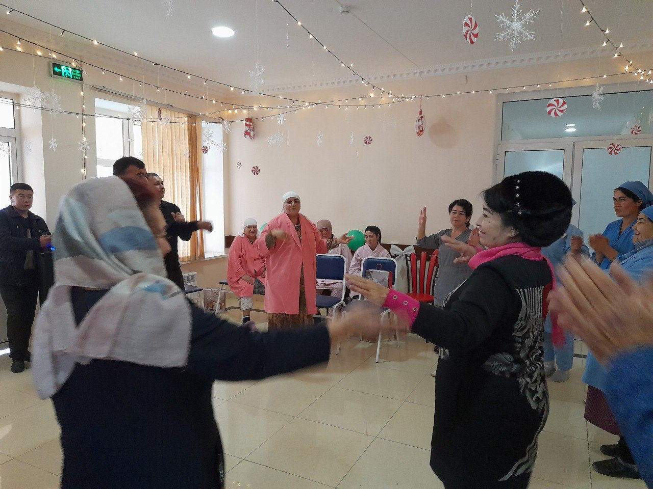 Шундан сўнг болажонларга байрамона кайфият улашиш мақсадида янги йил совғалари болажонларга ҳамда марказда даволанаётган беморларга улашилди.