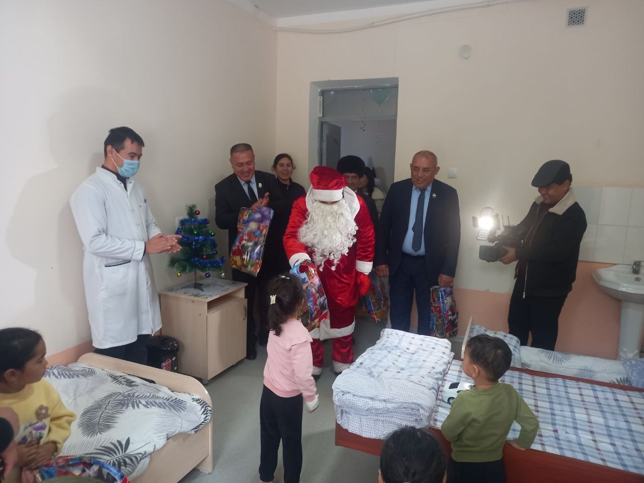 Ана шундай беғубор қалбларга қувонч, хуш кайфият ва умид учқунини улашиш мақсадида бугун “Адолат” СДП Сурхондарё вилоят Кенгаши томонидан партиянинг “Саховат-беназир қадрият” лойиҳаси доирасида “Бор меҳримиз сенга, болажон!» шиори остида Республика болалар гематология онкология ва клиник иммунология маркази Сурхондарё филиалида онкологик касалликлар билан касалланган бемор болажонлар учун ҳомийлар кўмаги остида “Кўчма арча” тадбири ташкил этилди. Ҳомийлар ва Қорбобо иштирокида бемор болажонларга байрам совғалари тарқатилди. Кутилмаган байрам ташрифи 30 нафардан ортиқ болажонлар учун бир олам қувонч ҳадя этди.