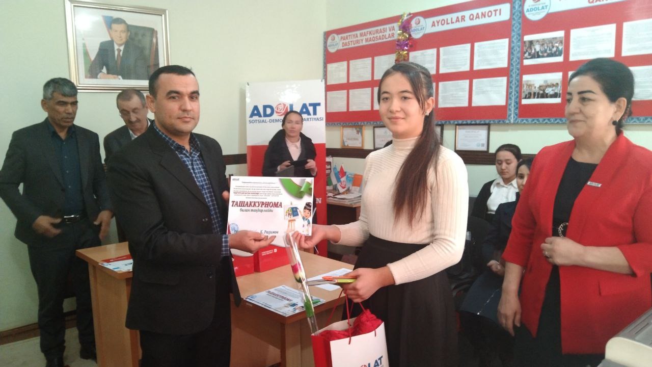Тадбирда бир гуруҳ танлов иштирокчилар партиянинг туман Кенгаши томонидан рағбатлантирилди.