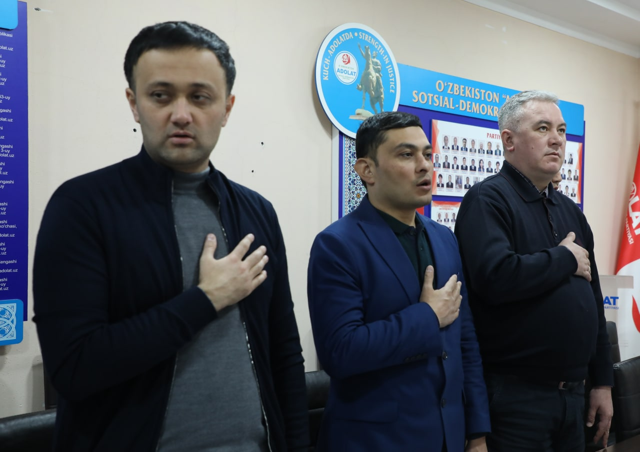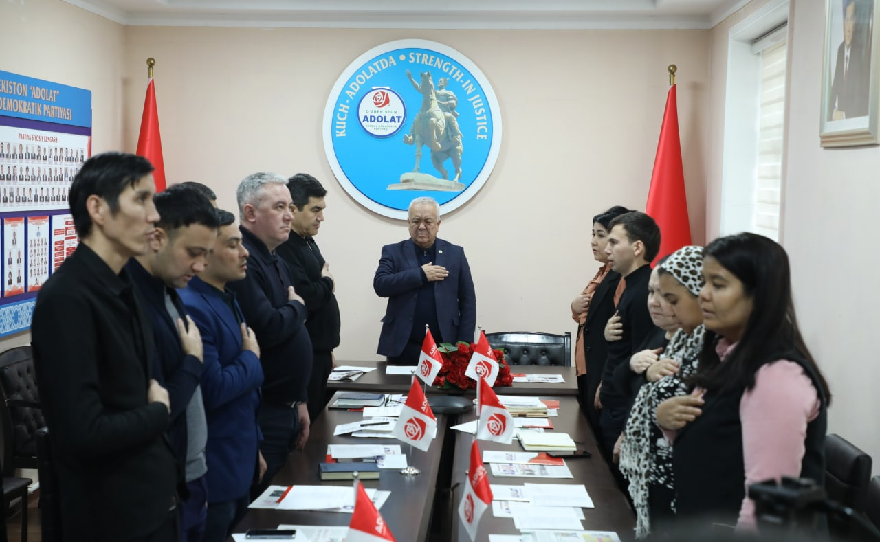 Жорий йилнинг 9 декабрь куни Ўзбекистон «Адолат» СДП Сиёсий Кенгаши Марказий аппаратининг мажлислар залида «Ўзбекистон Республикасининг Давлат мадҳияси тўғрисида»ги Ўзбекистон Республикаси Қонуни қабул қилинган куни муносабати билан «Давлат рамзларига ҳурмат - ватанпарварлик тимсолидир» мавзусида тадбир ташкил этилди.