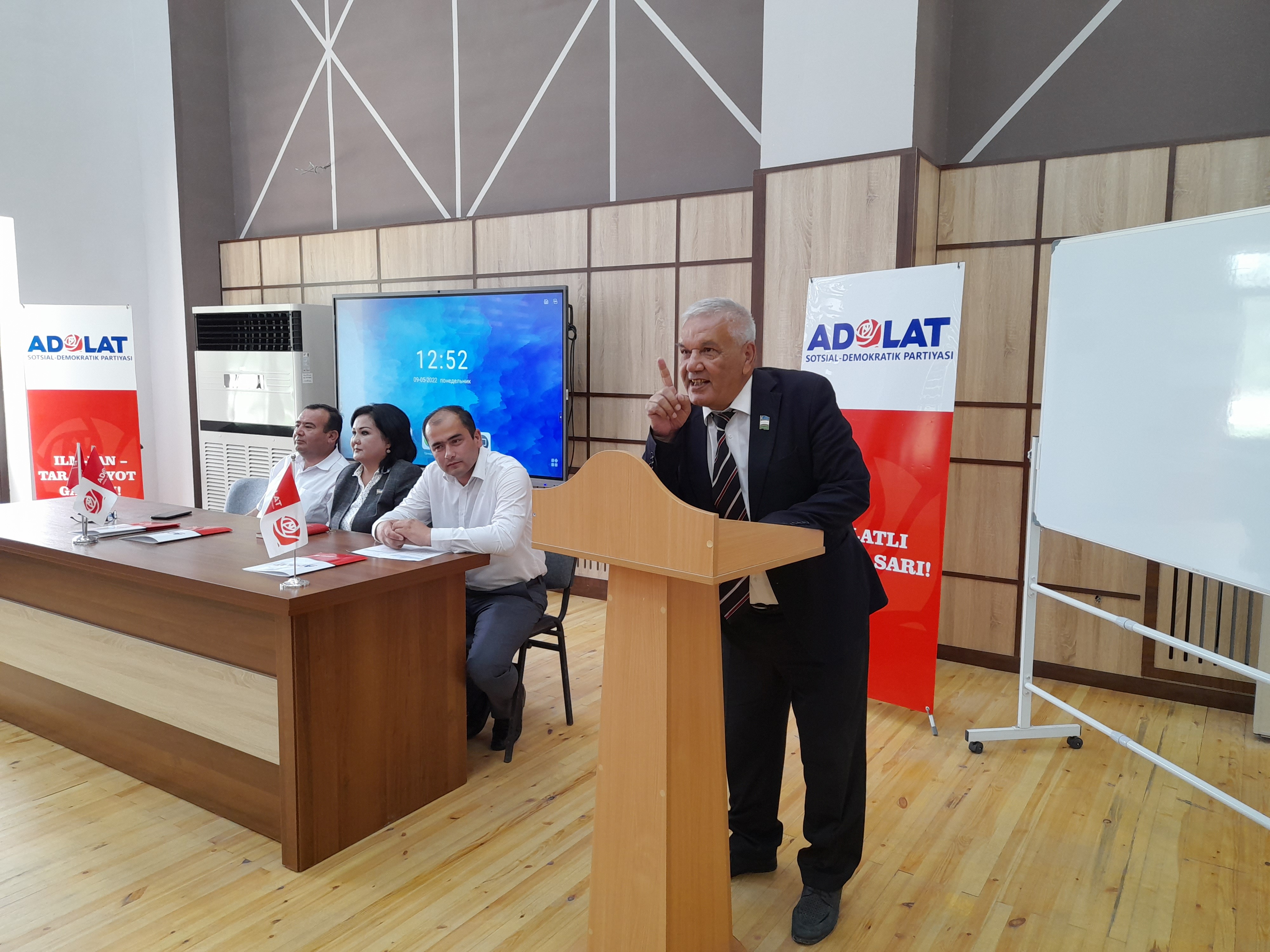 2022-йил 11-май куни Ўзбекистон “Адолат” СДП сиёсий Кенгаши Марказий аппарати бўлими бошлиғи М.М.Қўлдошев ва Сирдарё вилояти Кенгаши ҳамкорлигида, Тошкент кимё технология институти Янгиер филиалининг мажлислар залида Ўзбекистон “Адолат” СДП Янгиер шаҳар Кенгаши Ф.Расулов , Олий Мажлис Қонунчилик палатаси депутати Н.Джанибекова , Янгиер шаҳар Кенгаши депутати Т.Самиев , Янгиер шаҳар З.М.Бобур жоме масжидининг имоми Худойтулло Исаев ва институт талабалари иштирокида тадбир ташкил қилинди.