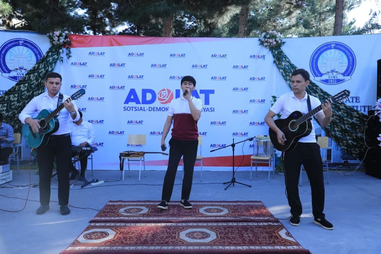 «Адолат» СДП Андижон вилоят кенгаши ташаббуси билан Андижон давлат тиббиёт олийгоҳи Талабалар уйида ташкил этилган маънавий-маърифий тадбирда юқоридагилар ўз ифодасини топди. Унда сўз олганлар Ўзбекистонни йил сайин юксалиб бораётгани, энг ривожланган давлатлар қаторидан ўрин олгани ва 31 йил давомида эришилган ютуқлар ҳақида гапирдилар. Жумладан, жамиятимизда инсон қадри ҳамма нарсадан устун қўйилаётгани ва юртдошларимизнинг она Ватанга бўлган меҳри чексиз эканлигини таъкидладилар.