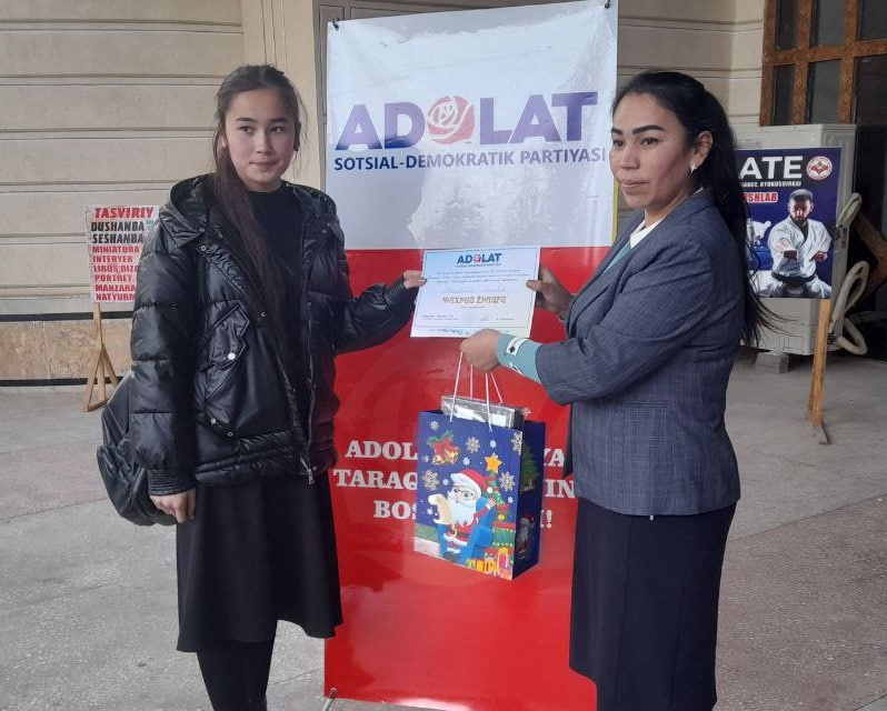 Аҳамиятли жиҳати шундаки, партиянинг вилоят кенгаши ҳар бир иқтидорли ўқувчиларнинг, меҳнатини алоҳида инобатга олдилар, жумладан 300 га яқин ижодий иш топширилган бўлса, ҳар бир қатнашчи партиянинг эсдалик совғаси ва ташаккурномаси билан тақдирланди ва тақдирлаш маросимида иштирок эта олмаган ўқувчиларнинг совғалари ҳамда ташаккурномалар уларнинг туманларига ўз ўқитувчиларига юборилди. Кўрик танловида иштирок этган ҳеч бир иштирокчи назардан четда қолмади, зеро боланинг истеъдодини рағбатлантириб турилса, уларнинг кўнгли тоғдек ўсади, шижоатига шижоат қўшилади. Тадбирда «Конституция ранглар жилосида» Республика кўрик танловининг Республика босқичида ғолиб бўлган 6 нафар иқтидорли ўқувчиларга партия Сиёсий Кенгашининг қимматбаҳо совғалари ҳамда фахрий ёрлиқлари топширилиб, 300 га яқин ёшлар партия вилоят кенгашининг ташаккурномаси ва эсдалик совғалари билан тақдирланди. Сўзим охирида нафақат менинг ўқувчиларим балки барча иқтидорли болаларга ушбу эътибор ва рағбат учун «Адолат» социал-демократик партияси Самарқанд вилоят кенгаш раҳбариятига ўз миннатдорчилигимни билдираман.
