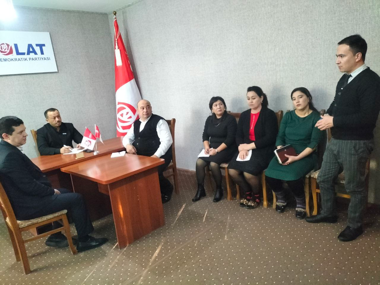 «Адолат» СДП Фарғона вилоят Кенгашида Мурожаатноманинг мазмун ва моҳиятига бағишлаб йиғилиш ўтказилди. Кенгаш ходимлари ва маҳаллий кенгаш депутатлари иштирокида ташкил этилган мазкур йиғилишда мавзу доирасида фикр-мулоҳазалар билдирилиб, жорий йил давомида амалга оширилиши лозим бўлган вазифалар белгилаб олинди.