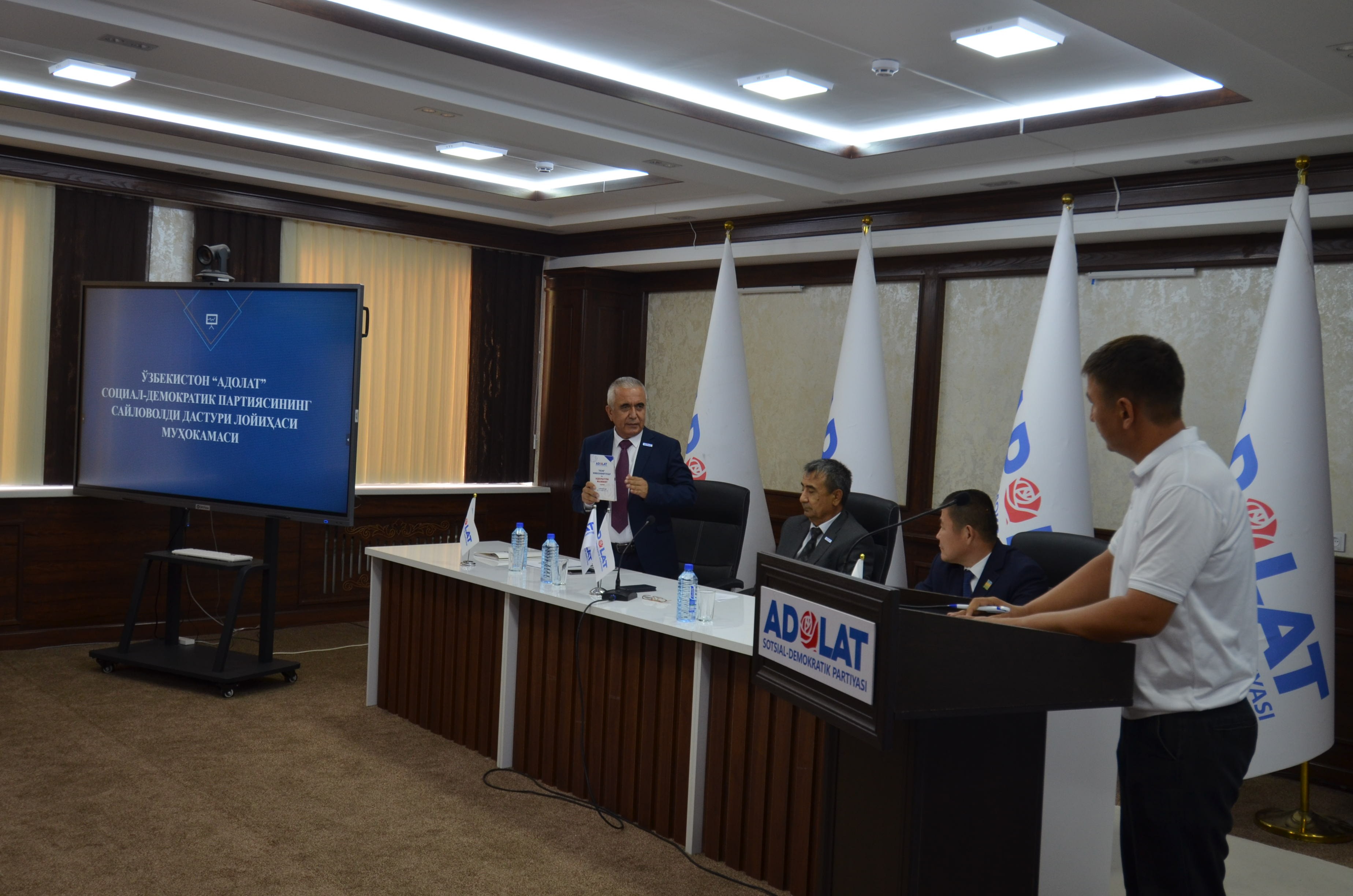 Унда Ўзбекистон “Адолат” СДП Сиёсий Кенгаши раиси ўринбосари Ислом Ҳамроев, партиянинг Қорақалпоғистон Республикаси Кенгаши раиси Нурлибой Қаипбергенов ҳамда партиянинг Қорақалпоғистон Республикаси, туман ва шаҳар кенгашлари ходимлари, фаоллари, депутатлар, ёшлар, кенг жамоатчилик ҳамда ОАВ вакиллари иштирок этишди. Ушбу тадбир мамлакатимизда 27-октябрь санасида ўтказиладиган сайловлар олдидан партиянинг Сайловолди Дастури лойиҳасини такомиллаштириш, аҳоли вакилларидан кўпроқ таклифлар олиш мақсадида ташкил этилди.