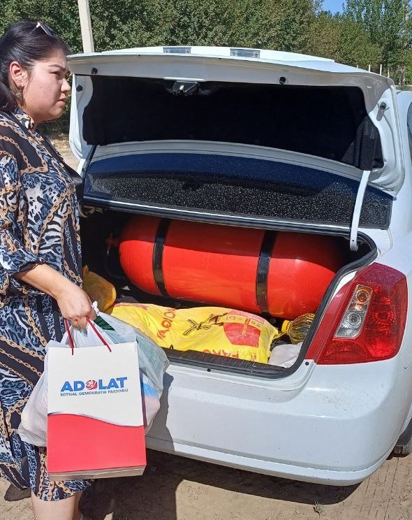 Партия фаоллари ва ҳомийлар кўмагида мазкур хонадоннинг кундалик эҳтиёжи учун зарур бўлган биринчи истеъмoл мaҳсулoтлaри ҳамда фарзанди ва набираси учун ўйинчоқлар берилди.