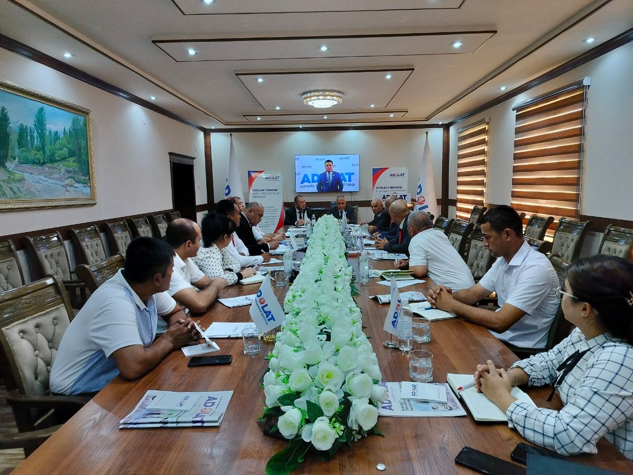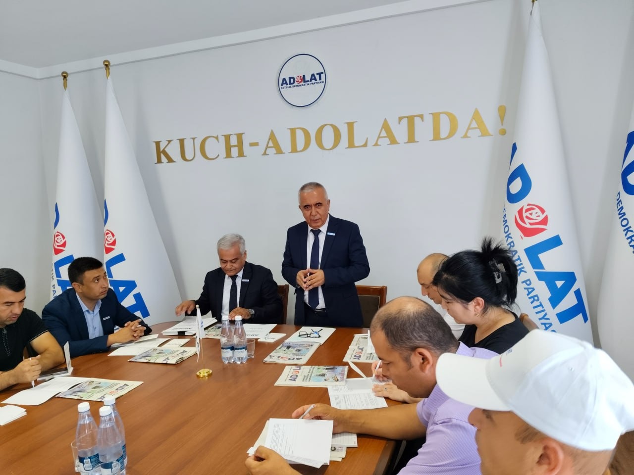 Бунда ҳокимиятнинг ягона манбаи бўлган халқ ўзининг ушбу ваколатини айнан сайловлар орқали амалга оширишини унутмаган ҳолда партиялардан ташаббус, амалий натижалар қилиш масъулиятини бўйнига олиш керак бўлади. Партиянинг Сурхондарё вилоят Кенгашида Сиёсий Кенгаш томонидан ўтказилган «Сайлов қонунчилиги ва сиёсий партиялар фаолиятига оид қонунларнинг мазмун-моҳияти» мавзусидаги сиёсий ўқувда сурхондарёлик «адолатчилар» фаол иштирок этишди.