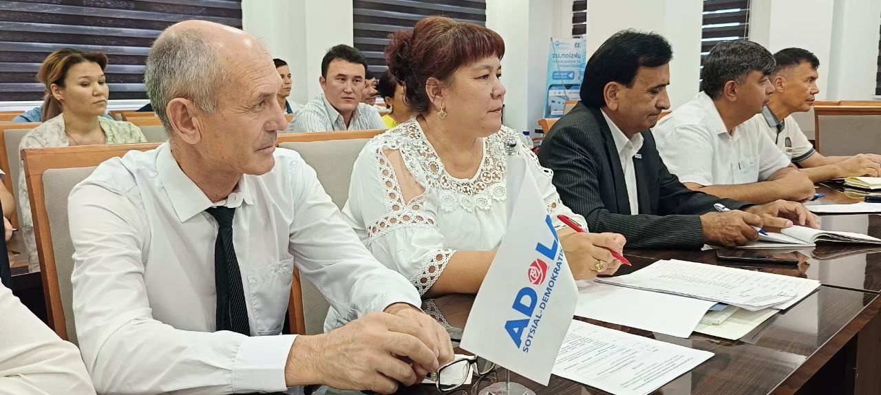 Тадбир давомида партия Марказий аппаратининг масъул ходимлари ва экспертлар томонидан мавзу юзасидан маърузалар қилиниб, иштирокчилар сайлов қонунчилиги ва сиёсий партиялар фаолиятига оид қонунларнинг мазмун-моҳиятини ўрганишди.