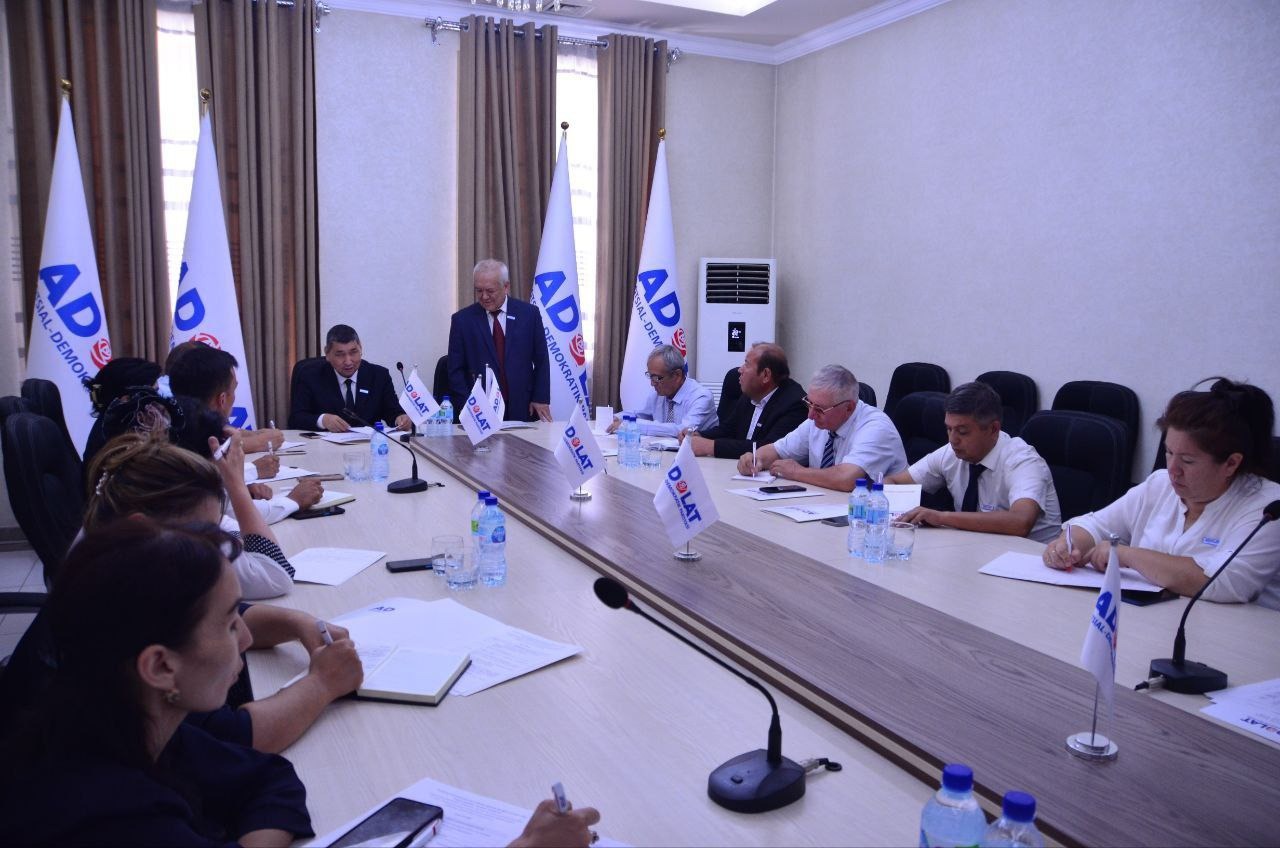 Шу билан бир қаторда сайлов кампанияси доирасида партиянинг аҳоли орасида танилувчанлигини ошириш, илгари сураётган ғоя ва ташаббусларидан фуқароларнинг хабардорлигини юксалтириш бўйича қилиниши керак бўлган галдаги вазифалар юзасидан фикр-мулоҳазалар билдирилди.