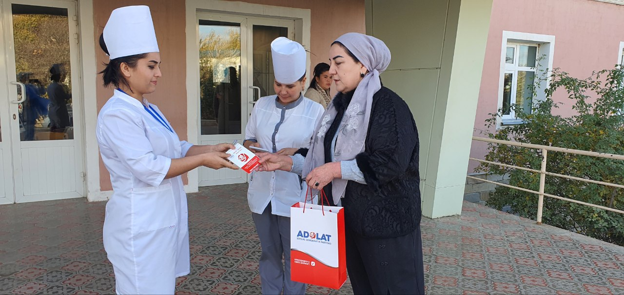 «Адолат» СДП Боғот туман Кенгаши томонидан ноябрь ойининг иккинчи якшанбаси «Тиббиёт ходимлари» куни деб белгилангани муносабати билан Боғот туманида фаолият олиб бораётган бир қатор тиббиёт муассасаларида соҳа куни тантанали нишонланди. Хусусан, туман тиббиёт бирлашмасидаги бошланғич партия ташкилотида партиянинг туман Кенгаши томонидан «Саломатлик посбонларига эҳтиром» мавзусида давра суҳбати ўтказилди. Унда тиббиёт ходимларининг машаққатли ва шарафли фаолияти эътироф этилди.