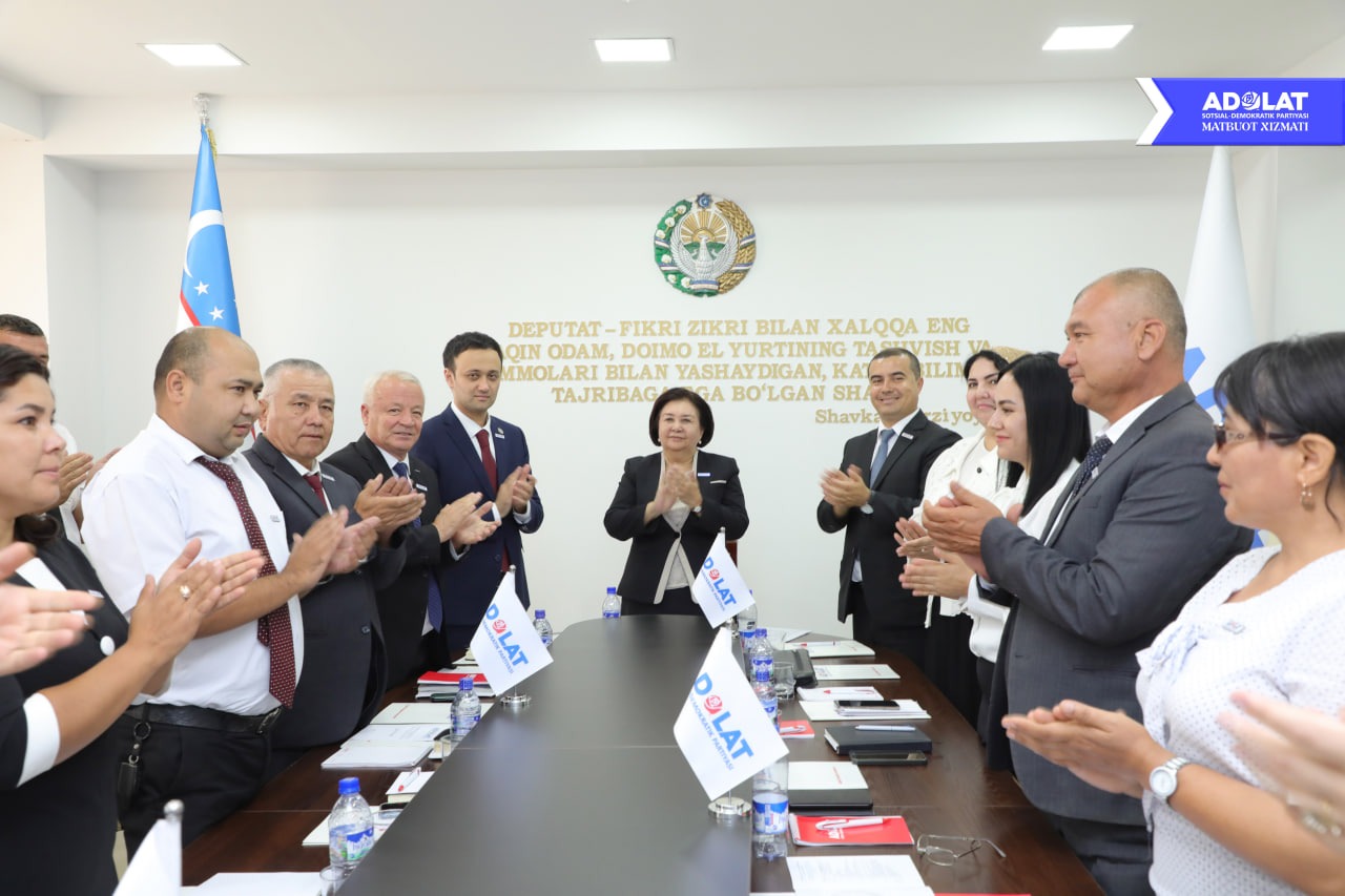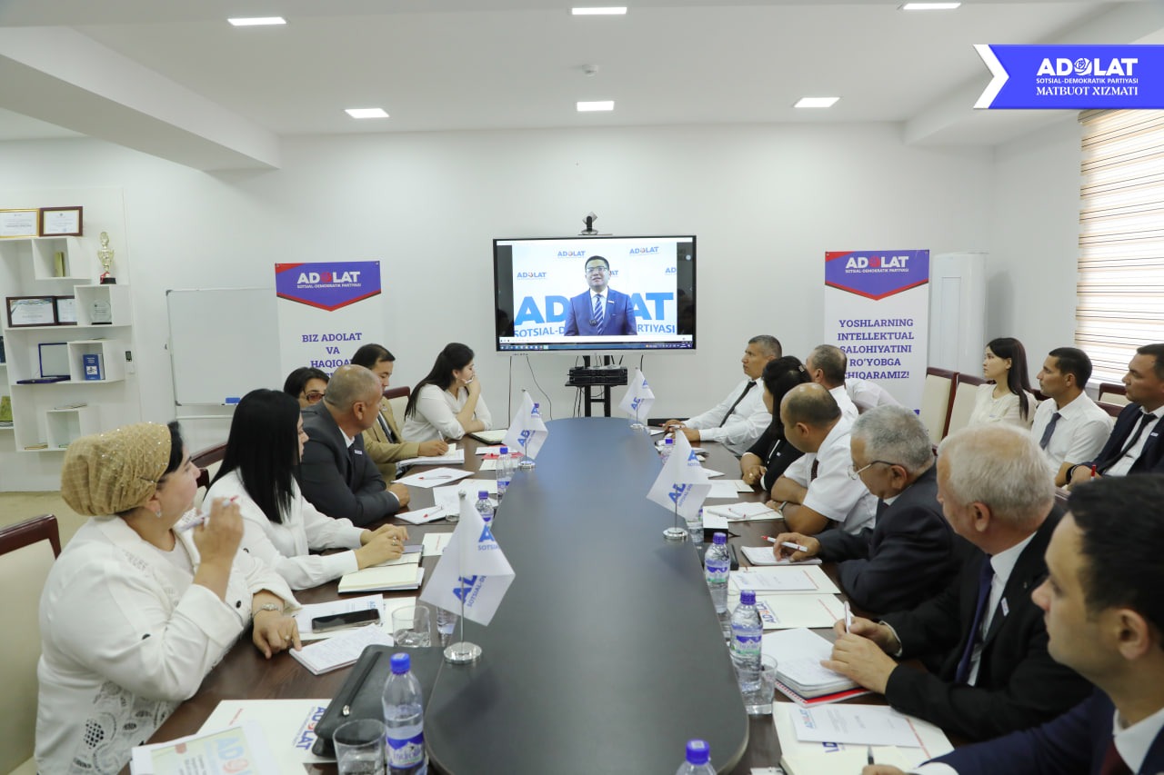 Шу билан бир қаторда партия етакчиси бўлажак Олий Мажлис Қонунчилик палатаси ва маҳаллий кенгашлар депутатлари сайловида «Адолат» СДПнинг муносиб иштирок этишини таъминлаш борасида ишлаб чиқилган стратегик режаларни тизимли равишда амалга ошириш – партия олдида турган асосий вазифа эканини таъкидлади.