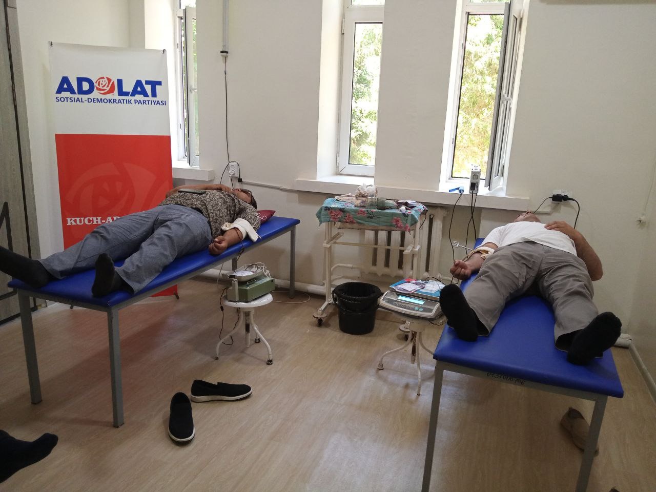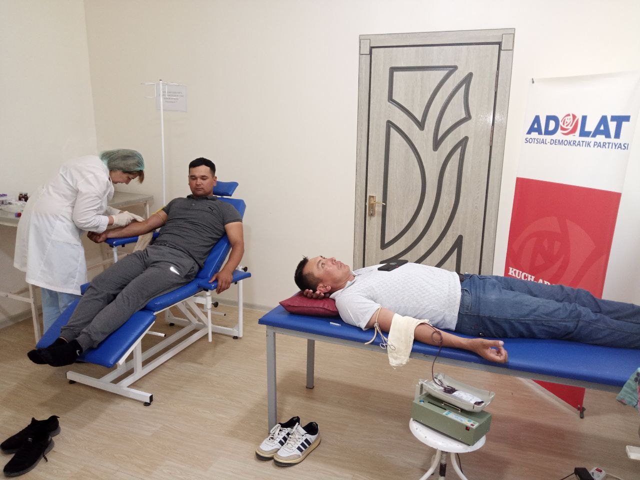 Oʻzbekiston “Adolat” sotsial-demokratik partiyasi Toshkent viloyati Kengashi tashabbusi bilan viloyatning Chirchiq shahridagi Toshkent viloyati qon quyish stansiyasida 1-iyun – “Xalqaro bolalarni himoya qilish kuni” munosabati bilan “Bor mehrimiz senga, bolajon!” shiori ostida begʻaraz donorlik aksiyasi tashkil etildi.