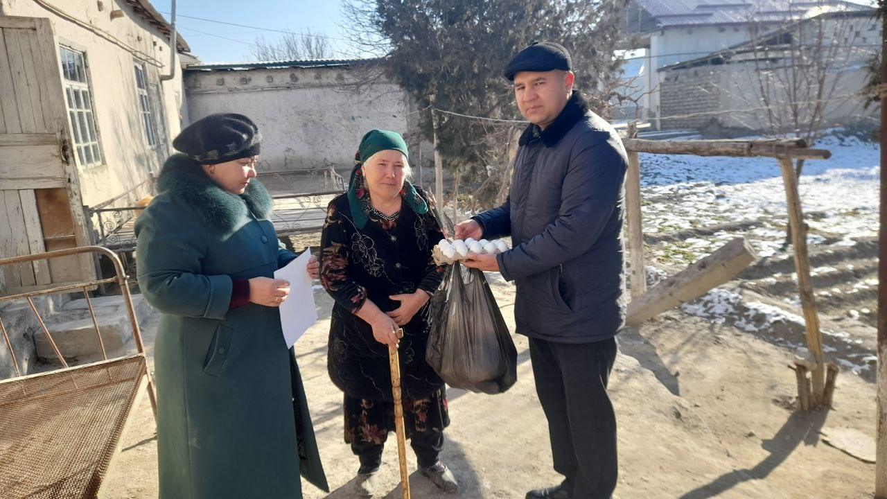 Shuningdek, havo haroratining sovuq boʻlishiga qaramasdan mahallalarda xizmat vazifasini bajarayotgan obodonlashtirish, avtoyoʻl va boshqa xizmat koʻrsatish xodimlari, nuroniy otaxon va onaxonlar hamda fuqarolar uchun osh tarqatildi.