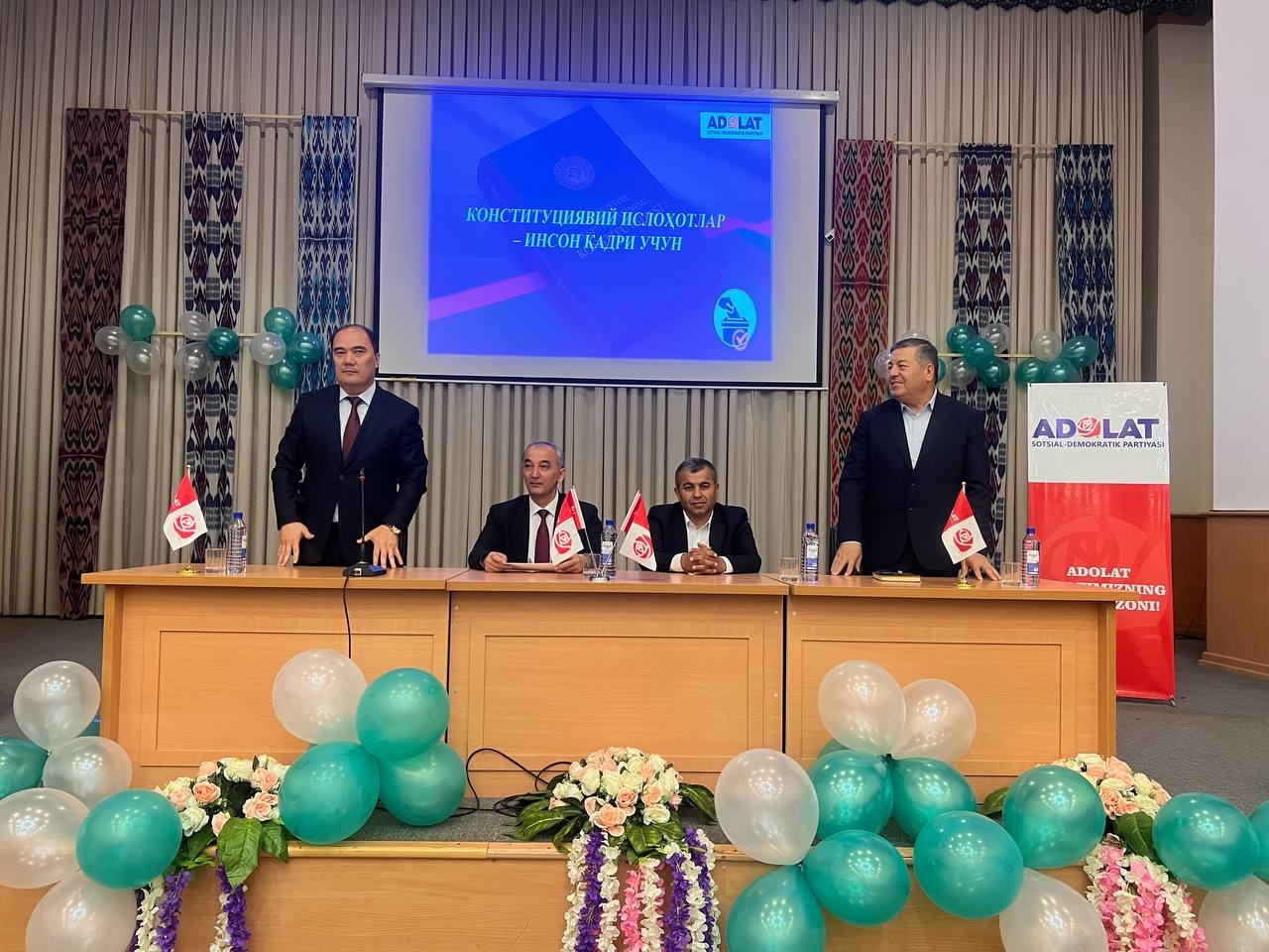 Toshkent Tibbiyot akademiyasi Urganch filialida Oʻzbekiston “Adolat” SDP Siyosiy Kengashi raisi Bahrom Abduhalimov, Oliy Majlis Qonunchilik Palatasi deputati Maqsud Qurbonboyevlar ishtirokida “Konstitutsion islohotlar-inson qadri uchun” mavzusida maʼnaviy-maʼrifiy tadbir tashkil etildi.Tadbirga partiya faollari, deputatlari, BPT, “Ayollar va yoshlar” qanoti raislari, yosh adolatchilar, mazkur oliygohda taʼlim olayotgan talabalar, professor oʻqituvchilar hamda ommaviy axborot vositalari vakillari ishtirok etishdi.