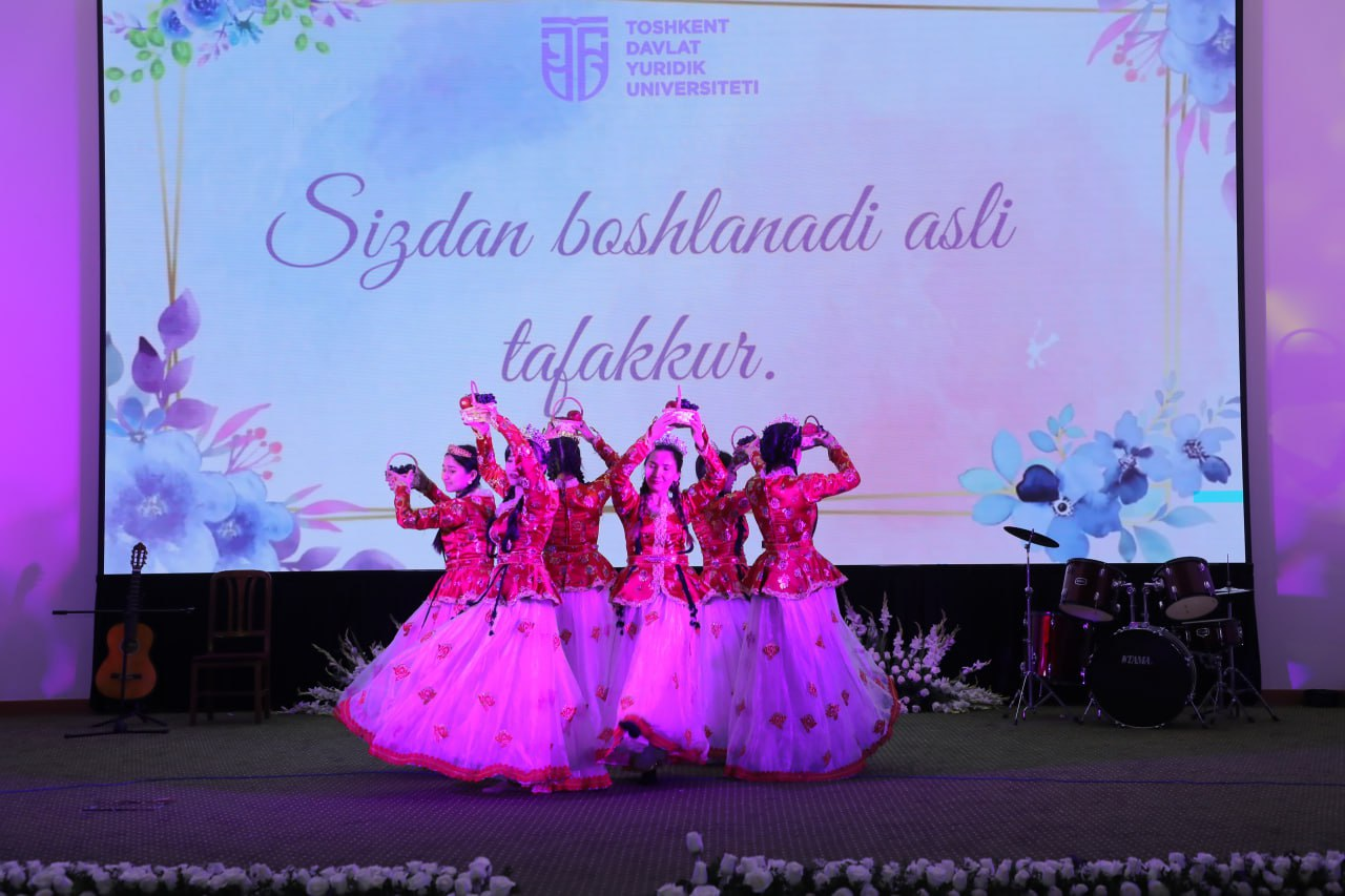 Shundan soʻng, tadbir qatnashchilariga bayram munosabati bilan tayyorlangan videorolik hamda Toshkent davlat yuridik universiteti talabalari ishtirokida badiiy tabrik dasturi namoyish etildi.