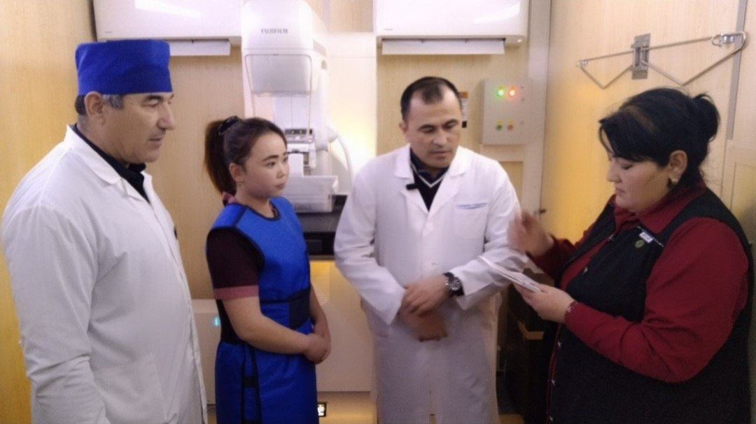 Mutaxassislar Xorazm viloyati aholisiga sifatli onkologik xizmat koʻrsatish va hozirda viloyatda 45-65 yoshli ayollar orasida sut bezi saratonini oldini olish va erta tashxislash uchun oʻtkazilayotgan mammoskrining tekshiruvlarini yanada jadallashtirish maqsadida tumanlarga chiqib tibbiy koʻriklarda qatnashishdi, tuman tibbiyot birlashmalaridagi onkolog, ginekolog, sitolog mutaxassislariga, umumiy amaliyot shifokorlari va hamshiralarga seminar-treninglar oʻtkazishdi.