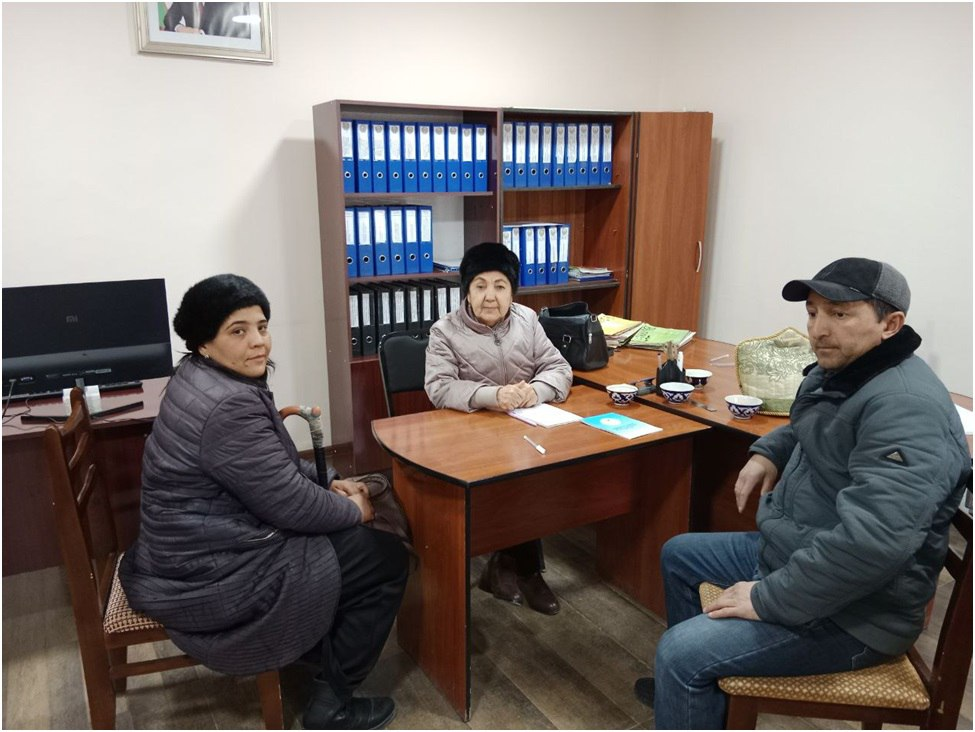 Deputat “Zogʻza” MFYdagi oʻnlab xonadonlarda boʻlib, aholi bilan yuzma-yuz muloqot qildi. Birinchi guruh nogironi Muzayyam Qiyomova toʻshakda yotib qolgan. U deputatdan moddiy yordam olishda amaliy yordam berishini soʻrab iltimos qildi. Uning murojaatiga asosan deputat shahardagi mutasaddi idoralarga deputatlik soʻrovi yubordi.