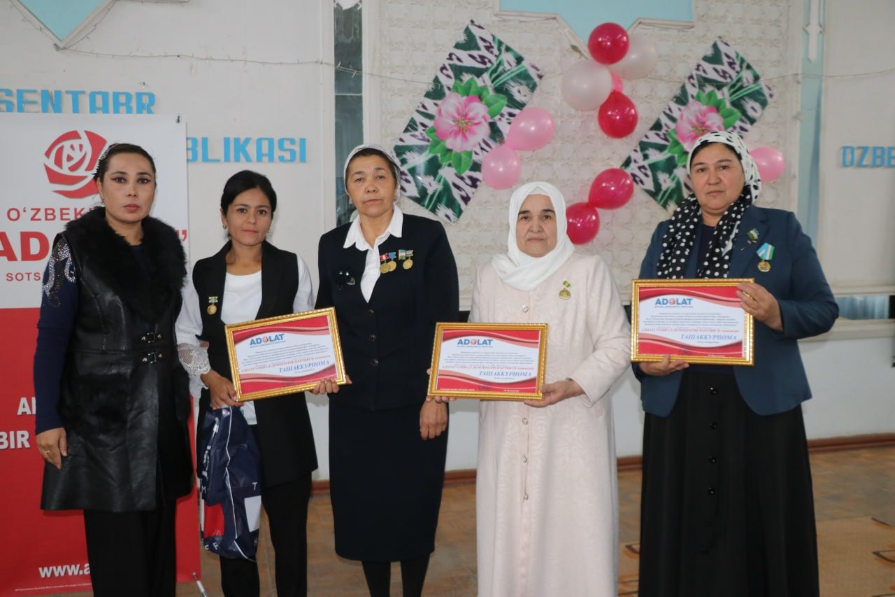 Tadbir yakunida jamiyatimiz rivojiga qoʻshgan hissasi uchun bir guruh faollarga “Adolat”SDP tuman kengashining tashakkurnomalari taqdim etildi.