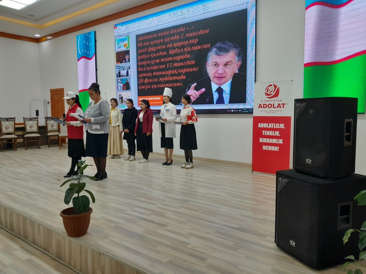 Ayni kunlarda “Adolat” sotsial-demokratik partiyasining “Vatan kelajagi yoshlar qoʻlida” loyihasi doirasida “Konstitutsiya bilimdoni” koʻrik-tanlovining tuman bosqichi oʻtkazilmoqda