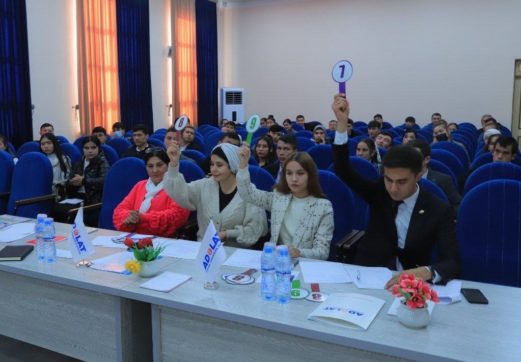 Bugun “Adolat” sotsial-demokratik partiyasining “Vatan ravnaqi-yoshlar qoʻlida” loyihasi doirasida “Konstitutsiya bilimdoni” koʻrik-tanlovining shahar bosqichi boʻlib oʻtdi. Yoshlarning huquqiy va siyosiy bilimlarini yanada yuksaltirishga, qolaversa, ularni Oʻzbekiston Respublikasi Konstitutsiyasi va amaldagi boshqa qonun hujjatlariga hurmat ruhida tarbiyalash, yoshlarda erkin fikrlash qobiliyati va nutq madaniyatini oʻstirish, ularning faol fuqarolik pozitsiyasini yanada mustahkamlash, ularda Vatanga muhabbat, kelajakka ishonch ruhini shakllantirish, iqtidorli yoshlarni aniqlash va ragʻbatlantirish hamda “Adolat” SDP dasturiy maqsad va vazifalarini targʻib qilish maqsadida ushbu tanlov Namangan viloyati yuridik texnikumida koʻtarinki ruhda oʻtkazildi.