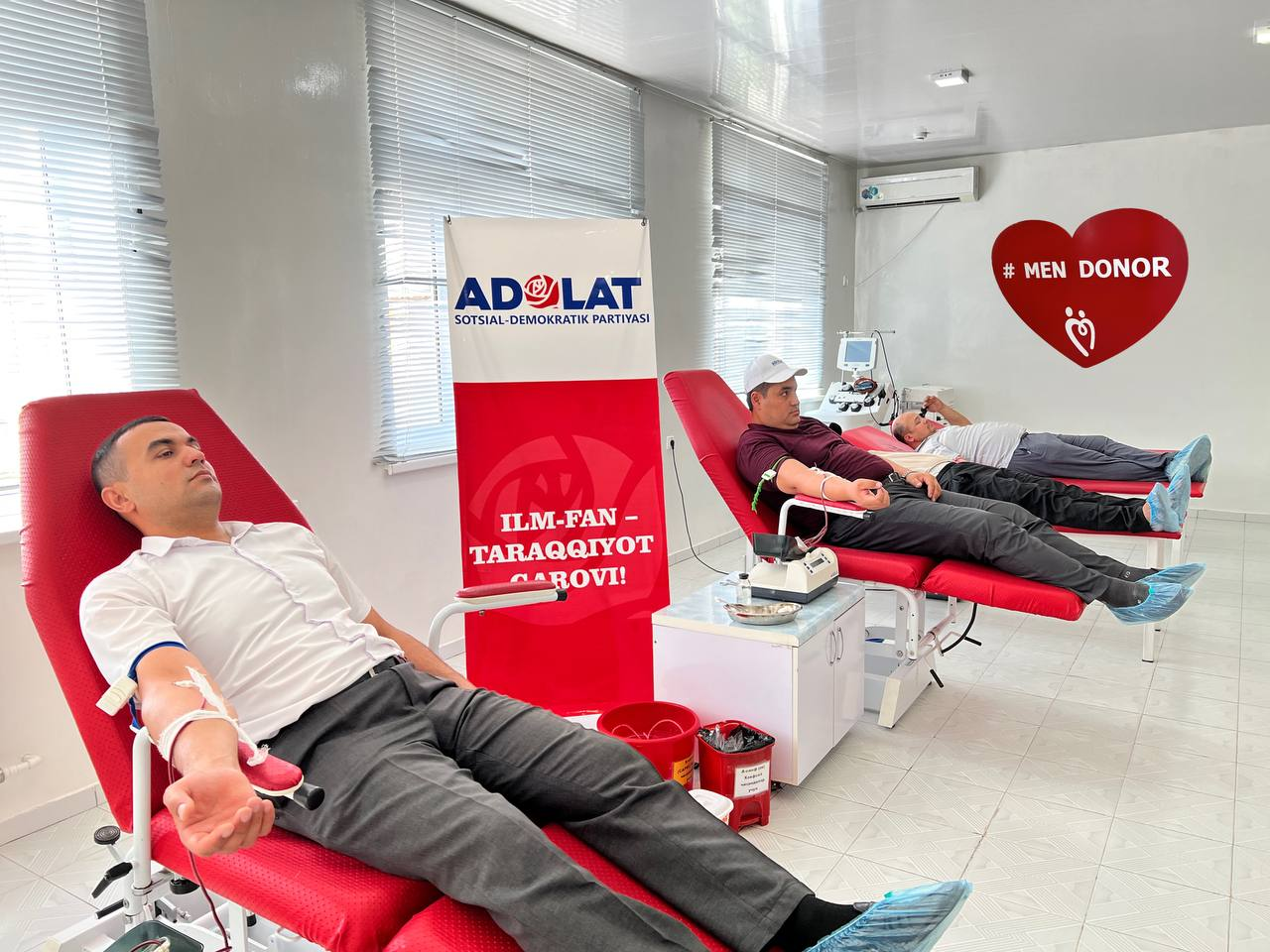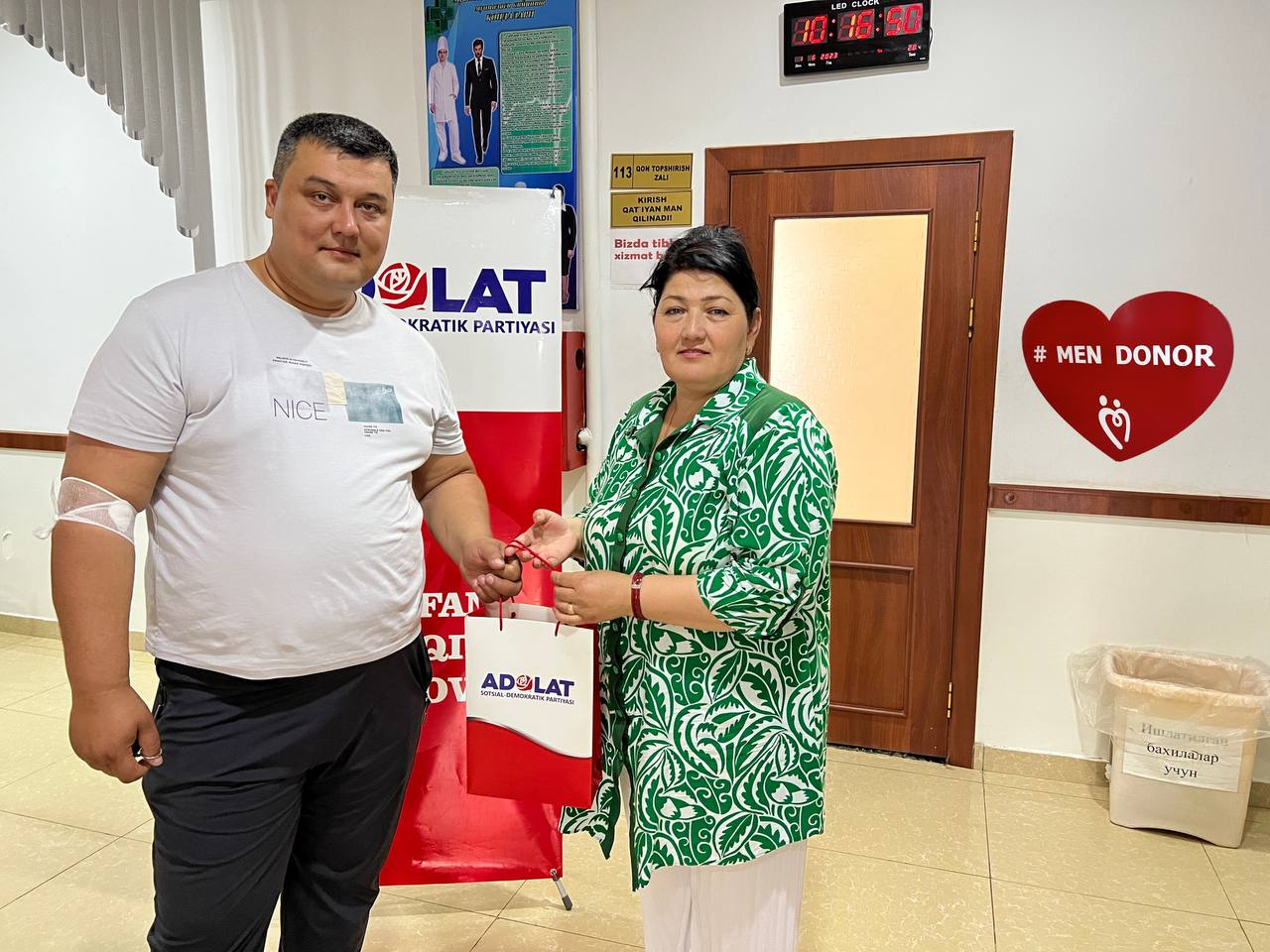 На сегодняшний день достойное место в сердцах наших соотечественников занимает традиционная, безвозмездная благотворительная донорская акция «Вся наша любовь тебе, дитя!», проводимая по инициативе социал-демократической партии «Адолат» по всей республике.