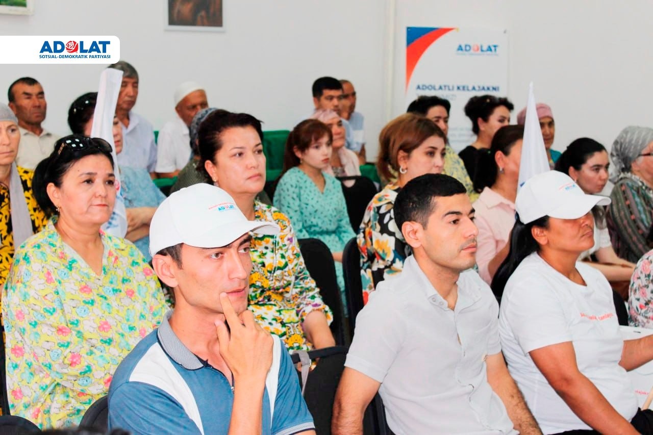 На встрече с избирателями Чиназского района Гульнора Ахмедова, доверенное лицо кандидата в Президенты от социал-демократической партии «Адолат» Робахон Махмудовой обратила внимание на вопрос построения справедливого правового демократического государства и сильного гражданского общества, отмеченного как один из главных целей, выдвинутых в программе кандидата.
