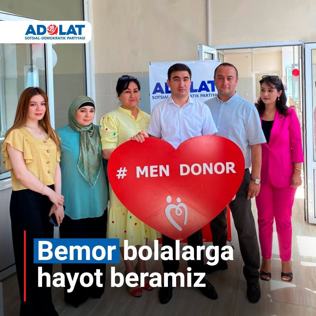 Социал-демократическая партии Узбекистана “Адолат” приглашает всех наших соотетечественников, добровольцев участвовать в безвозмездной, благотворительной донорской акции, которая дарит жизнь нашим малышам и подарит надежду, улыбку.