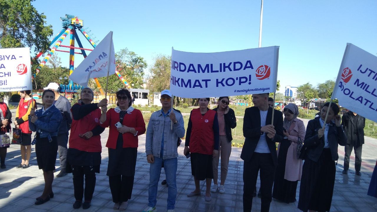 Известно, что пропагандистская деятельность, организованная в связи с внесением изменений и дополнений в Конституцию Республики Узбекистан, вступает в горячую фазу. Пропагандистская акция, организованная совместно с Хорезмским областным и Ургенчским городским Советами партии под девизом «Конституционные реформы во имя человеческого достоинства» в парке культуры и отдыха «Амир Темур» города Ургенча, помогла участникам повысить свои конституционные знания и навыки.