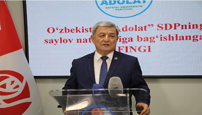 -Партия томонидан кўрсатилган жами 24 нафар номзодимиз Олий Мажлис Қонунчилик палатаси депутатлигига сайланди. Шундай бўлса ҳам аввалги натижалар билан солиштирганда депутатлар сони бўйича энг кўп ўсишга эришган партияга айландик – деди партия раҳбари - Бундан ташқари партиялар орасида ўз ўрнини яхшилаб, юқорироқ поғонага кўтарилишга эришишга ҳам айнан “Адолат” социал-демократик партияси бўлди. Яъни депутатлар сони бўйича 4 ўриндан 3-ўринга кўтарилишга эришдик.